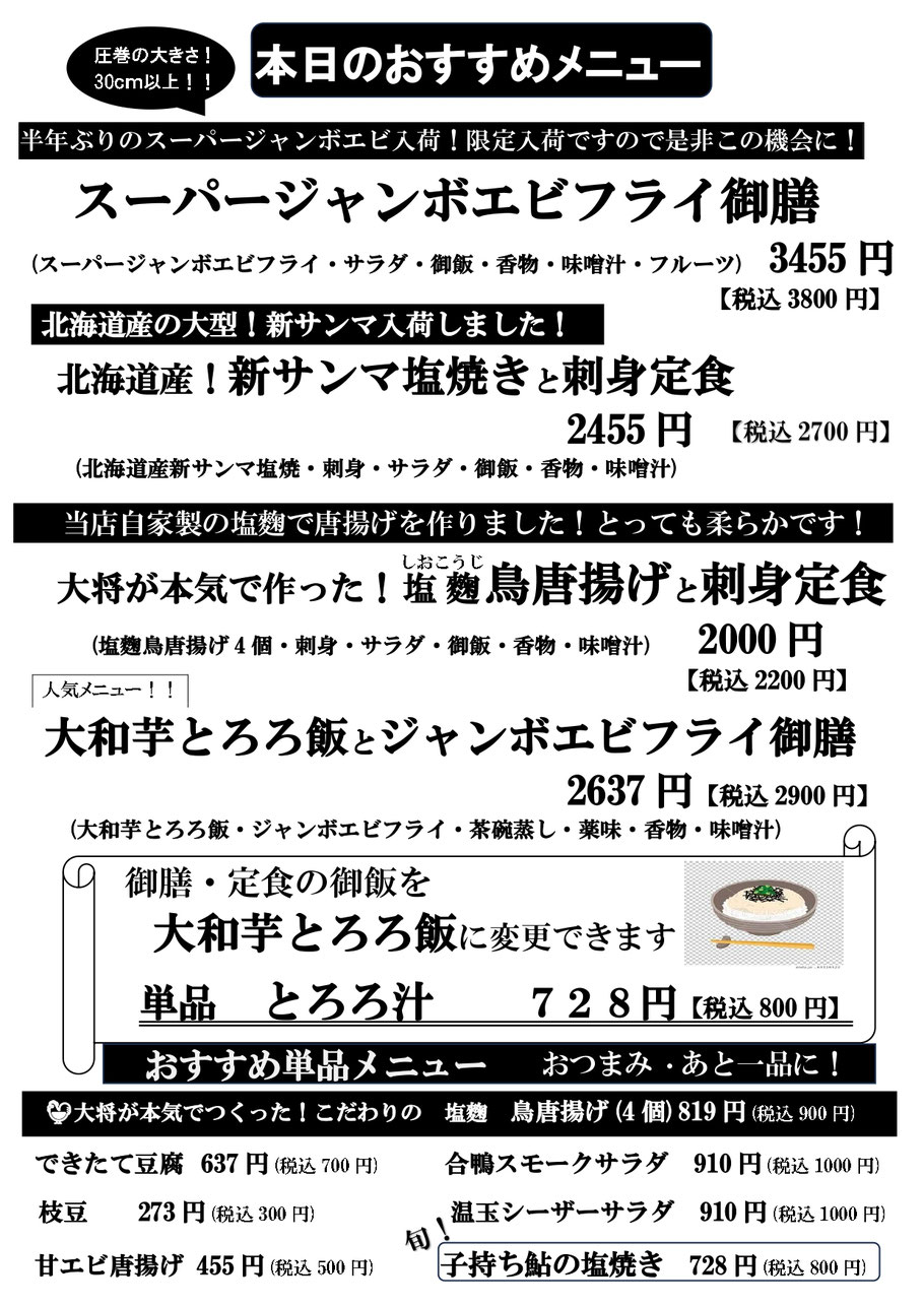 当店は魚料理専門店であるが故、お祝い事に相応しく